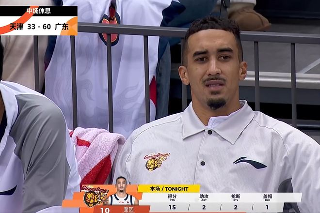 次節(jié),王少杰連續(xù)被對手封蓋,但是第三次暴扣打進??蚧璞┛鄞蜻M,但是回防過程中在中圈廣告貼上滑倒,受傷下場。薩姆納三分還進,胡明軒拋投不中,杜鋒依舊鼓掌鼓勵。薩林杰中投打進,分差已經(jīng)拉開到20分以上。徐杰命中三分,繼續(xù)擴大優(yōu)勢。徐杰助攻薩姆納空接得分,杜鋒豎起大拇指。徐杰三分再中,薩林杰單手搶板單手投籃得分,上半場天津隊33比60大比分落后。詹姆斯12分7籃板;徐杰6分4助攻,薩林杰12分5籃板,奎因15分,薩姆納13分6籃板5助攻3搶斷。